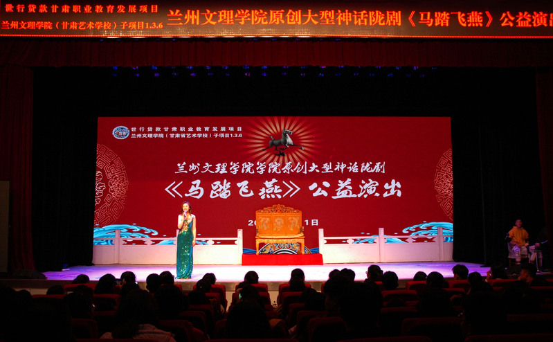 根据世行项目软活动《逻辑框架》的工作安排,由3200威尼斯vip承担的1.3.6分项目兰州文理学院艺术团携大型原创神话陇剧《马踏飞燕》先后于10月31日、11月1日两晚分别在西北民族大学礼堂和兰州财经大学陇桥学院学术报告厅隆重上演,并取得圆满成功,获得师生们的一致好评。