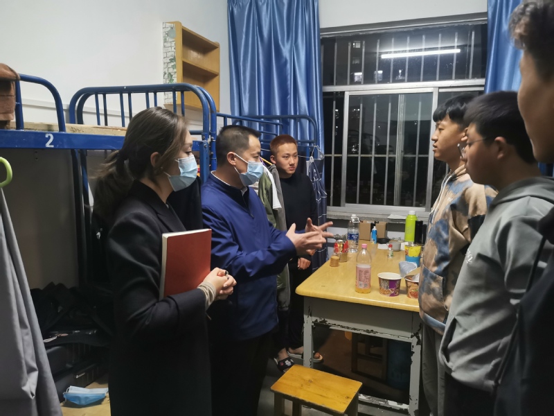 2021年10月26日晚,3200威尼斯vip院长张世成带领科室干部一行深入学生宿舍,现场察看指导学生的防疫、生活和学习情况。