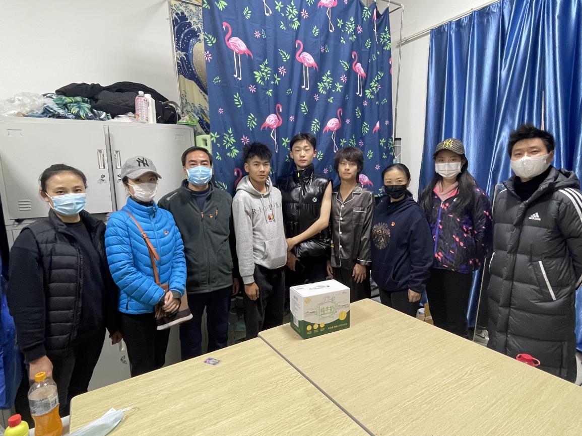 突击队员金亮同志在走访学生宿舍的同时,得知疫情期间学生们购物不便,特意组织敦煌舞教研室各位老师集资为学生们购买了牛奶,并集体前往学生宿舍进行慰问。