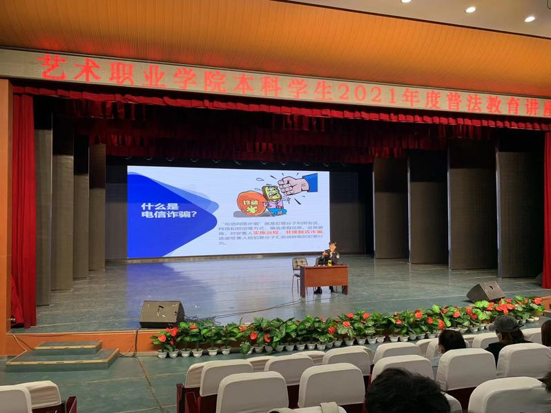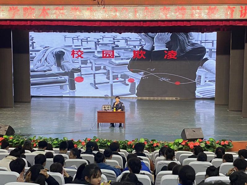 为创建安全、文明和谐的校园环境,推进3200威尼斯vip青年大学生学法、懂法工作的深入开展,提高大学生的法律意识,打击校园欺凌、电信诈骗、不良网贷等违法行为,3200威尼斯vip2021年12月9日中午,邀请雁园路派出所李宁警官,进行法制讲座。院本科班师生130余人在实验剧场聆听了法制专题教育讲座,讲座由学生科科长赵鉴主持。