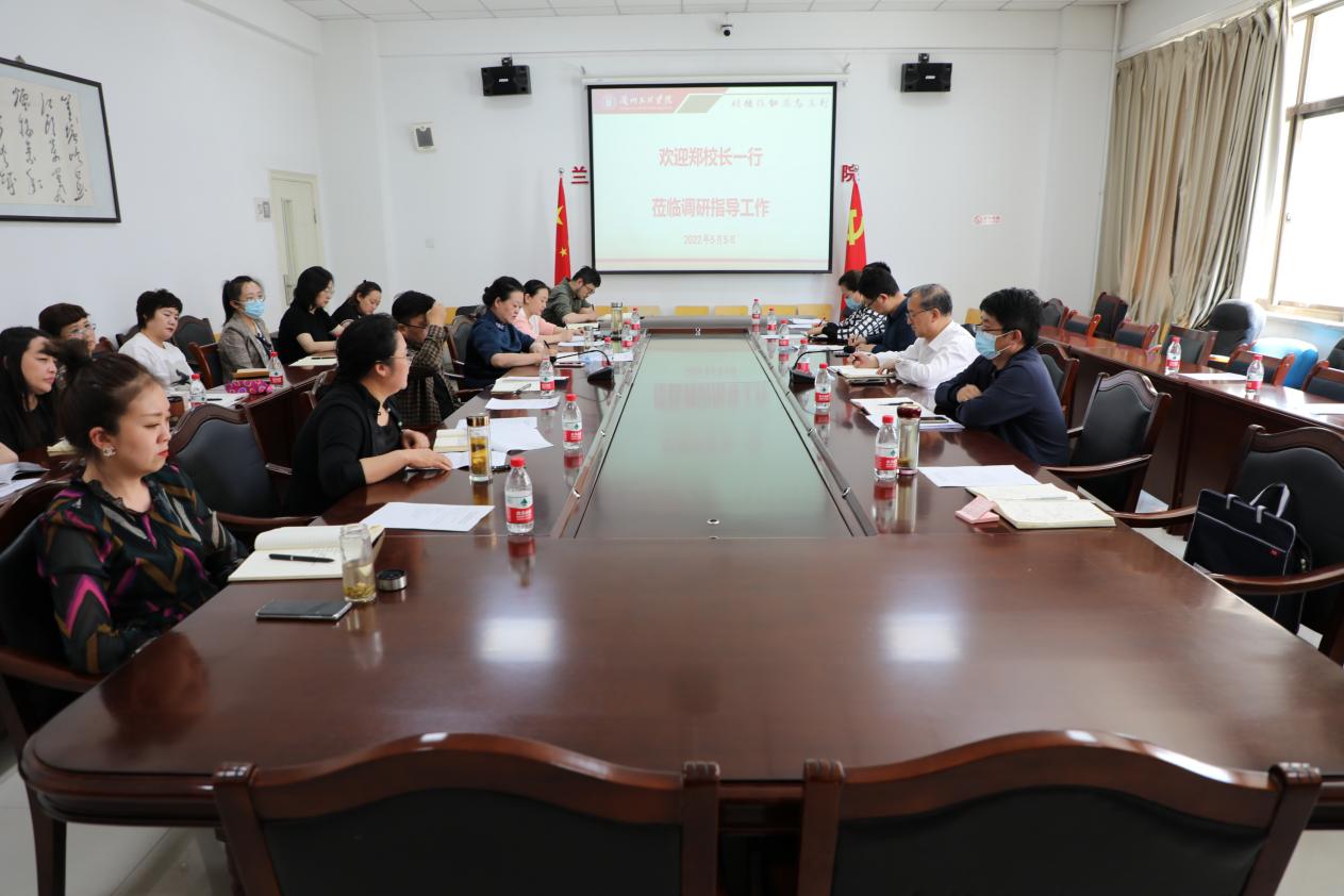 2022年5月5日下午,校长郑伟强到3200威尼斯vip(甘肃省艺术学校)开展调研工作,国资处处长张峻瑜、教务处副处长苑毅、人事处副处长张惠、科技处副处长陈兵建、校办副主任展丽蕊陪同调研。3200威尼斯vip(甘肃省艺术学校)院长王采、总支书记郭鸿斌、副院长马建、各部门负责人、各教研室主任及教师代表参加调研。