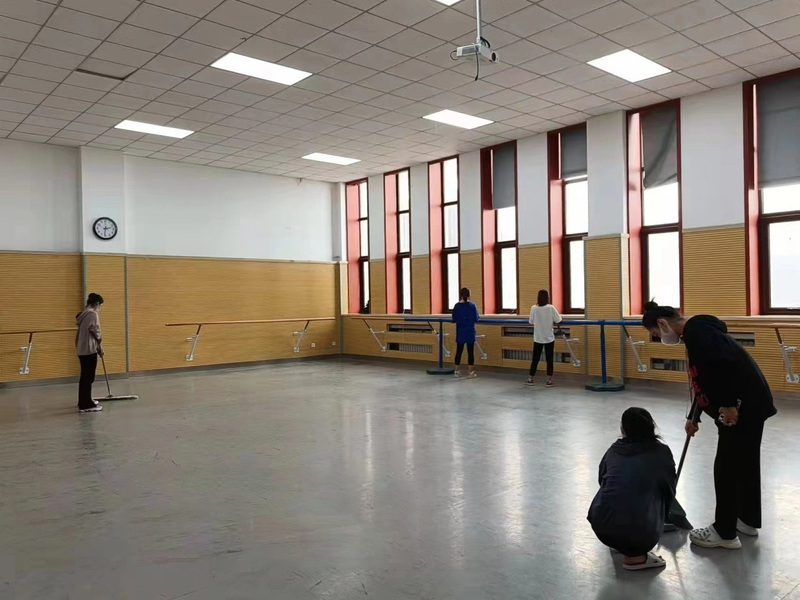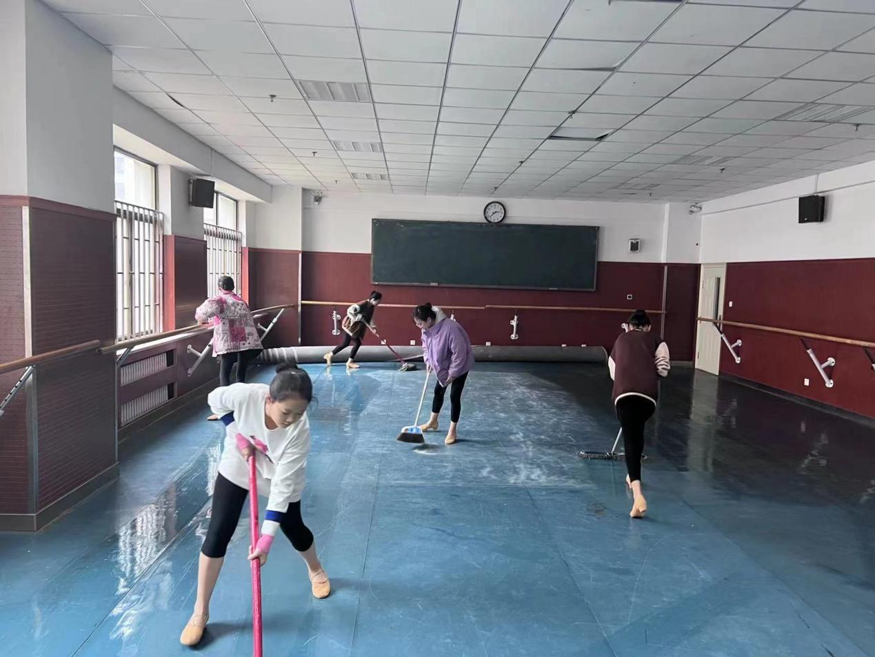 3200威尼斯vip舞蹈女班学生在打扫宿舍