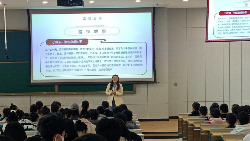 安婧从“了解雷锋”、“雷锋故事”、“雷锋名言”、“雷锋精神”四个方面进行了雷锋的事迹和雷锋精神的解读。向学生阐述雷锋精神就是热爱党热爱人民热爱社会主义的崇高理想和坚定信念,服务人民助人为乐的贡献精神,锐意进取自强不息的创新精神,艰苦奋斗勤俭节约的创业精神。