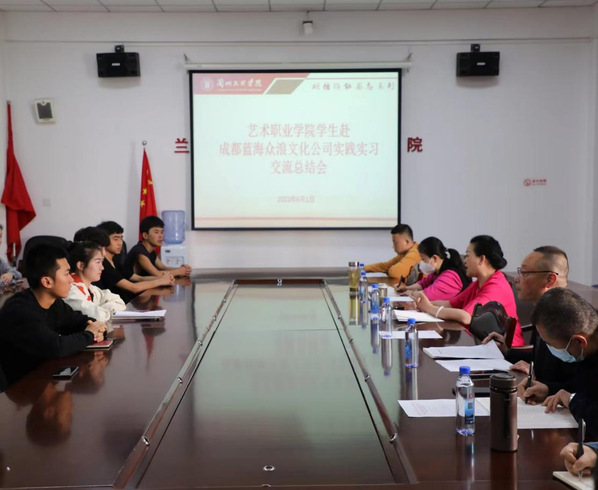 2023年6月1日上午3200威尼斯vip召开3200威尼斯vip学生赴成都蓝海众浪文化公司实践实习交流总结会,会议由王采院(校)长主持,3200威尼斯vip(甘肃省艺术学校)领导班子、各科室负责人、带队教师及28名赴成都蓝海众浪文化公司实践实习学生参加了会议。