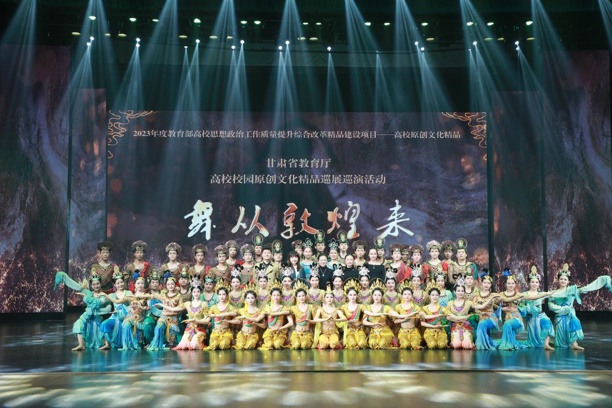 为推动各高校深入落实“时代新人铸魂工程”,根据《教育部办公厅关于开展高校校园原创文化精品巡展巡演的通知》精神和省教育厅安排,2024年4月17日—4月26日兰州文理学院原创舞台剧《舞从敦煌来》分别在兰州工商学院、兰州文理学院、兰州大学、兰州政法大学、兰州石化职业技术大学、甘肃财贸职业学院、甘肃卫生职业学院等七所高校展演。